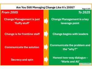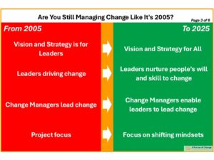 “Let’s create a sense of urgency.” These approaches might have worked twenty years ago. Today? They’re actively counterproductive. Are you still managing change like it’s 2005?