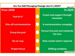 Question: Are you still managing change like it’s 2005? Which outdated change management habit is your organization still clinging to? See website for guidance.